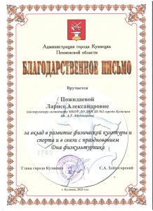 Сведения о профессиональной переподготовке (при наличии) | ООО «Институт развития образования, повышения квалификации и переподготовки» по программе «Проведение и методическое обеспечение процессов физкультурной и спортивной деятельности. Инструктор-методист по физической культуре», г. Абакан, 07.11.2023 г. |